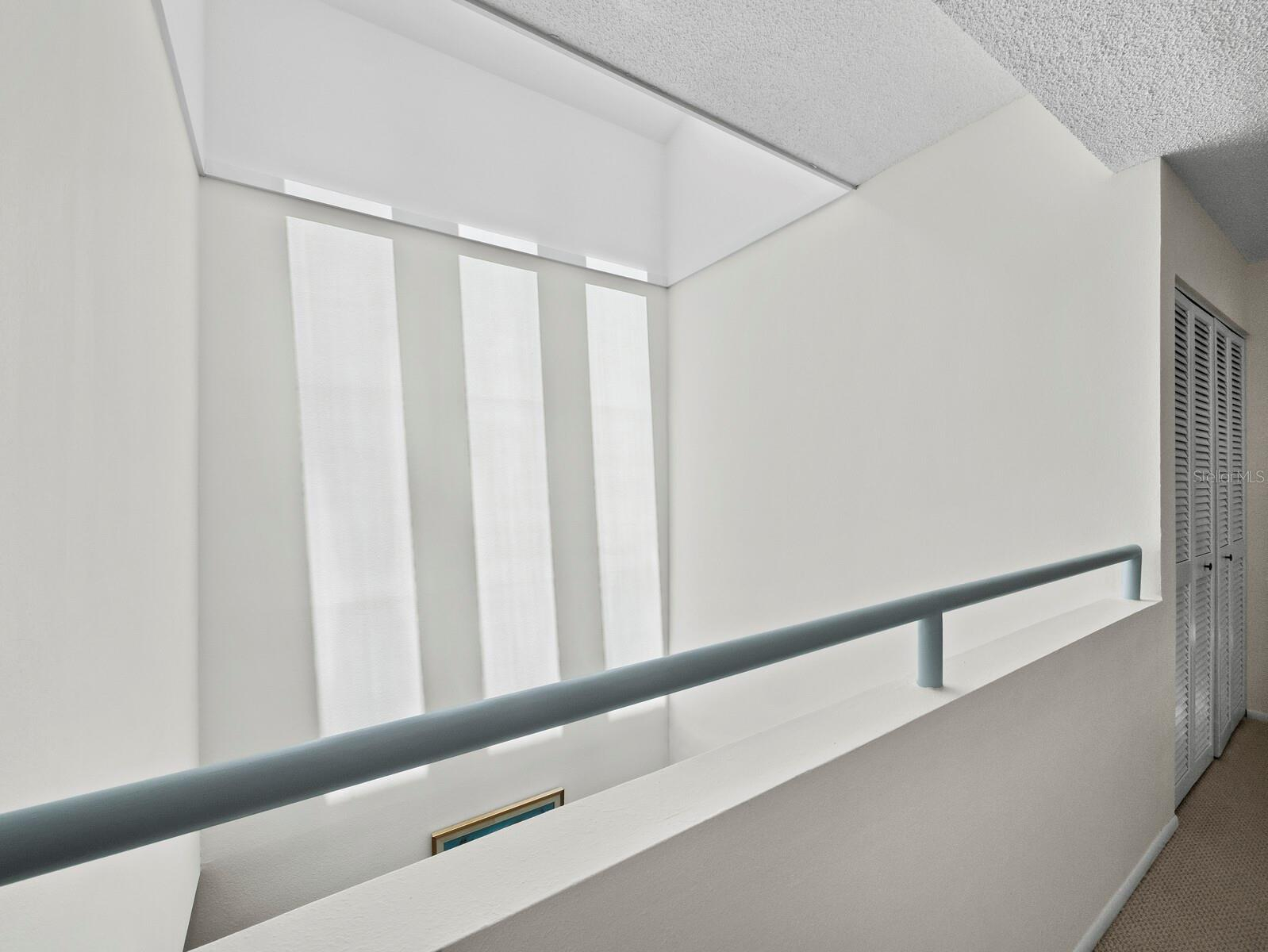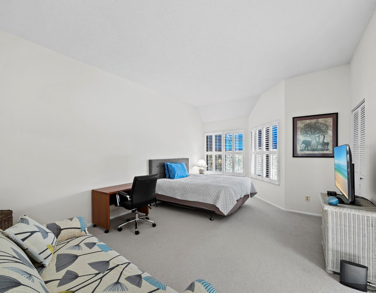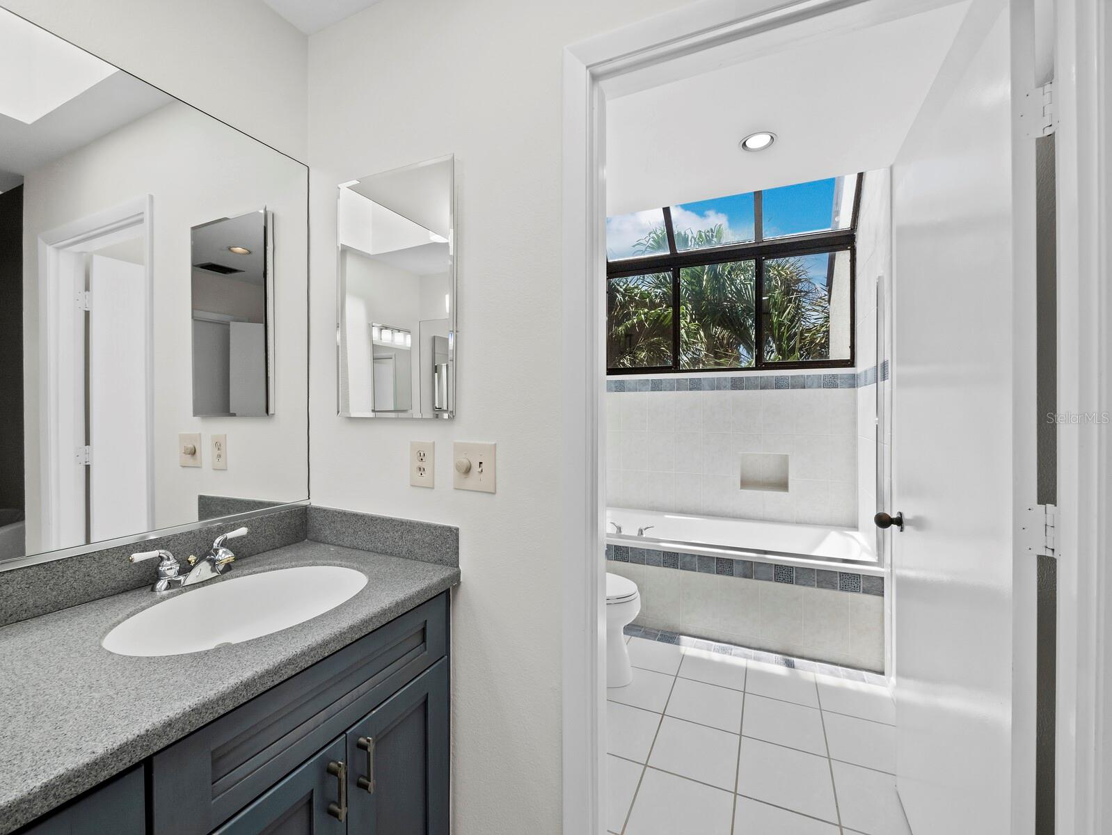 Inside, soaring ceilings and neutral finishes highlight the homes open design and timeless appeal. The galley kitchen, complete with a charming breakfast nook framed by plantation-shuttered windows, is the perfect place to enjoy morning sunshine. Skylights crown the adjacent dining area, infusing it with light and drama, while the spacious living room - with its fireplace and sliders to the enclosed patio - creates a natural gathering space. From here, a private walk-down provides direct access to Fairway Bays resort-style amenities. A guest half-bath adds convenience on the main level. Upstairs, a dramatic catwalk overlooking the dining space and skylights leads to two en-suite bedrooms. Each offers cathedral ceilings, while the primary suite impresses with dual vanities and a spa-like bath featuring a soaking tub beneath an arched skylight. This residence also includes a 2-car garage with a large bonus rooman ideal setting for a workshop, studio, or extra storage. As a resident of Fairway Bay, you will enjoy Deeded Beach Access at the Bay Isles Beach Club, 24-hour gated security, a heated pool, tennis & pickleball courts, fitness center, and all the privileges of Bay Isles living. Optional membership at the Longboat Key Golf & Tennis Country Club and deepwater slips are also available, elevating the lifestyle even further.