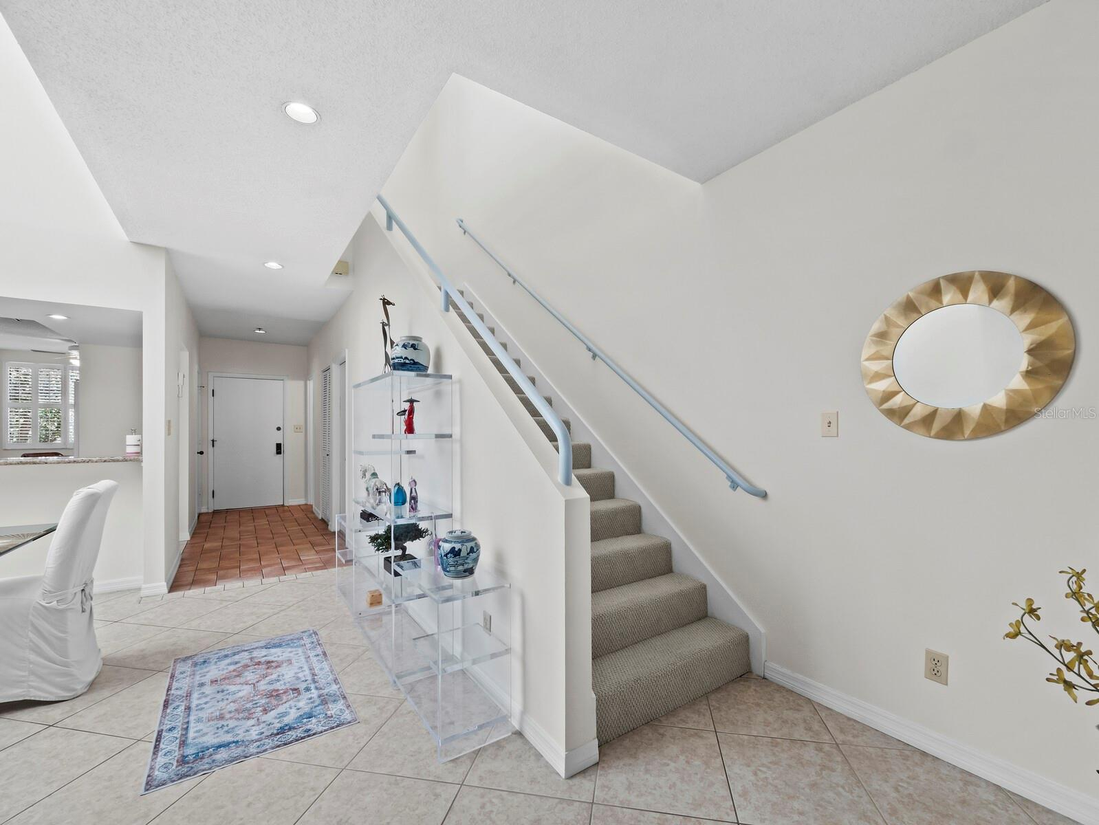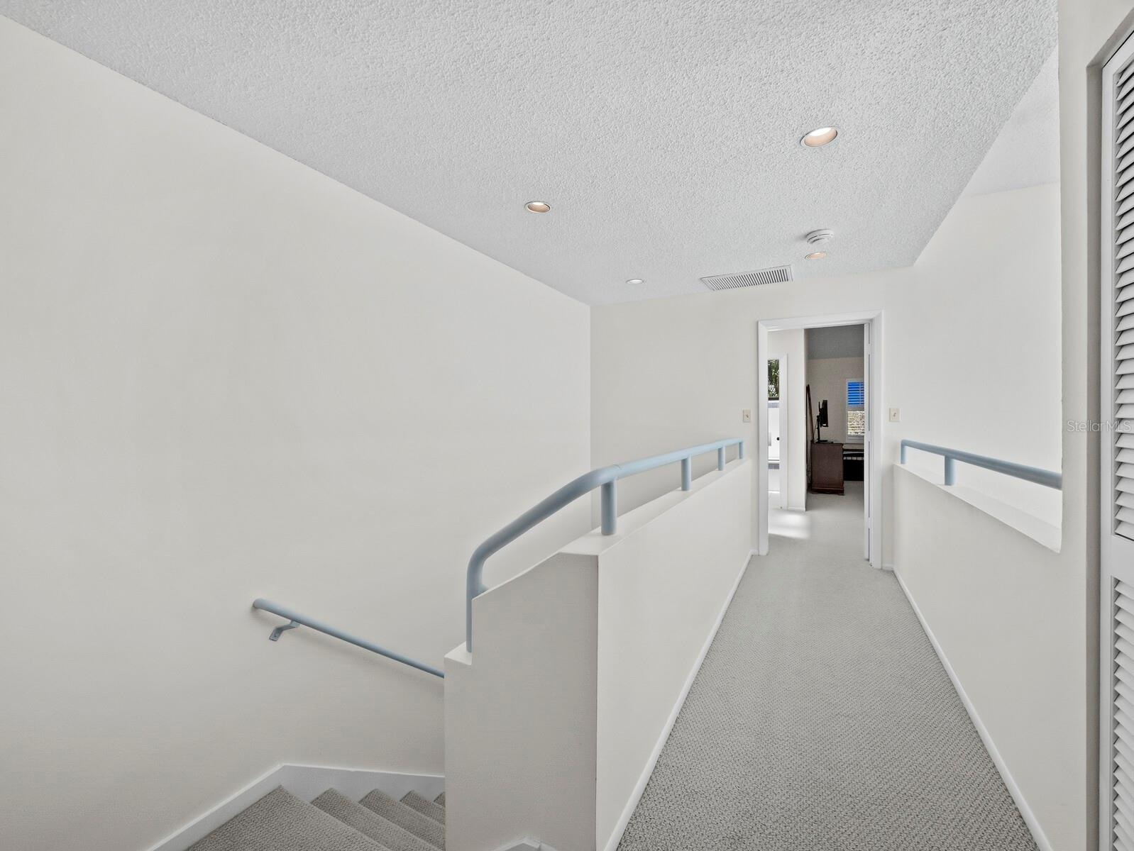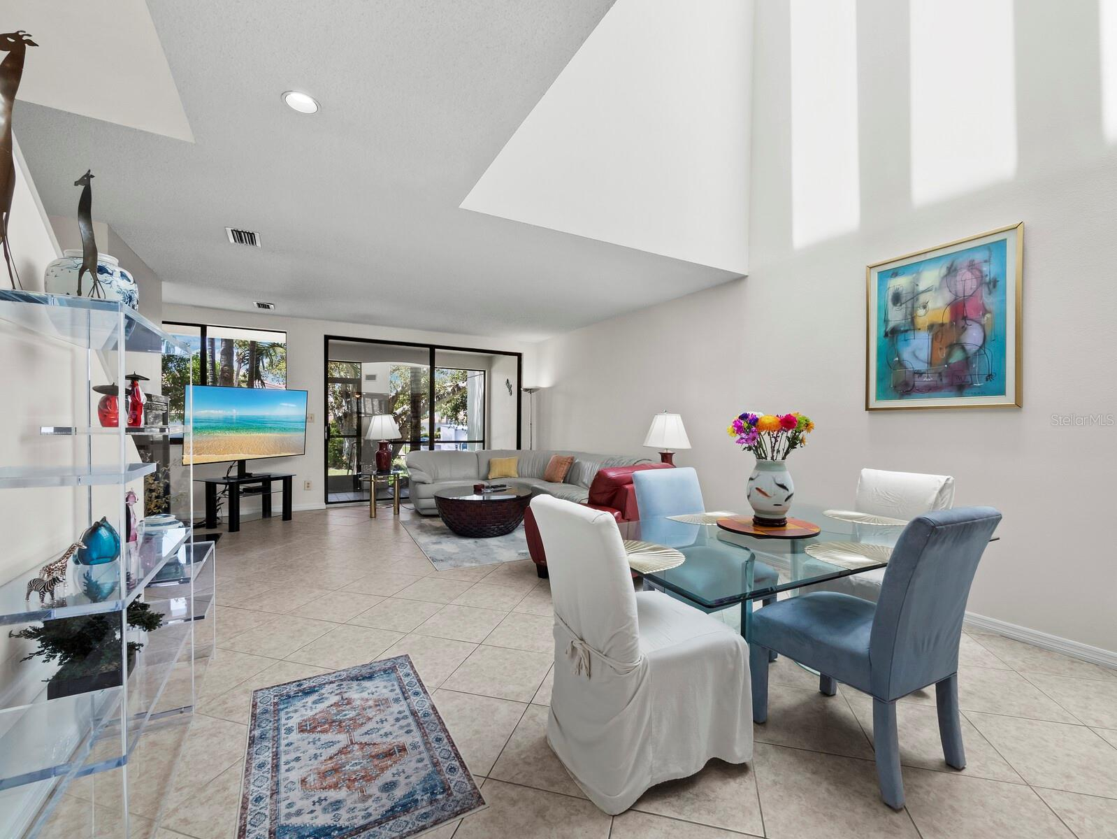 Inside, soaring ceilings and neutral finishes highlight the homes open design and timeless appeal. The galley kitchen, complete with a charming breakfast nook framed by plantation-shuttered windows, is the perfect place to enjoy morning sunshine. Skylights crown the adjacent dining area, infusing it with light and drama, while the spacious living room - with its fireplace and sliders to the enclosed patio - creates a natural gathering space. From here, a private walk-down provides direct access to Fairway Bays resort-style amenities. A guest half-bath adds convenience on the main level. Upstairs, a dramatic catwalk overlooking the dining space and skylights leads to two en-suite bedrooms. Each offers cathedral ceilings, while the primary suite impresses with dual vanities and a spa-like bath featuring a soaking tub beneath an arched skylight. This residence also includes a 2-car garage with a large bonus rooman ideal setting for a workshop, studio, or extra storage. As a resident of Fairway Bay, you will enjoy Deeded Beach Access at the Bay Isles Beach Club, 24-hour gated security, a heated pool, tennis & pickleball courts, fitness center, and all the privileges of Bay Isles living. Optional membership at the Longboat Key Golf & Tennis Country Club and deepwater slips are also available, elevating the lifestyle even further.